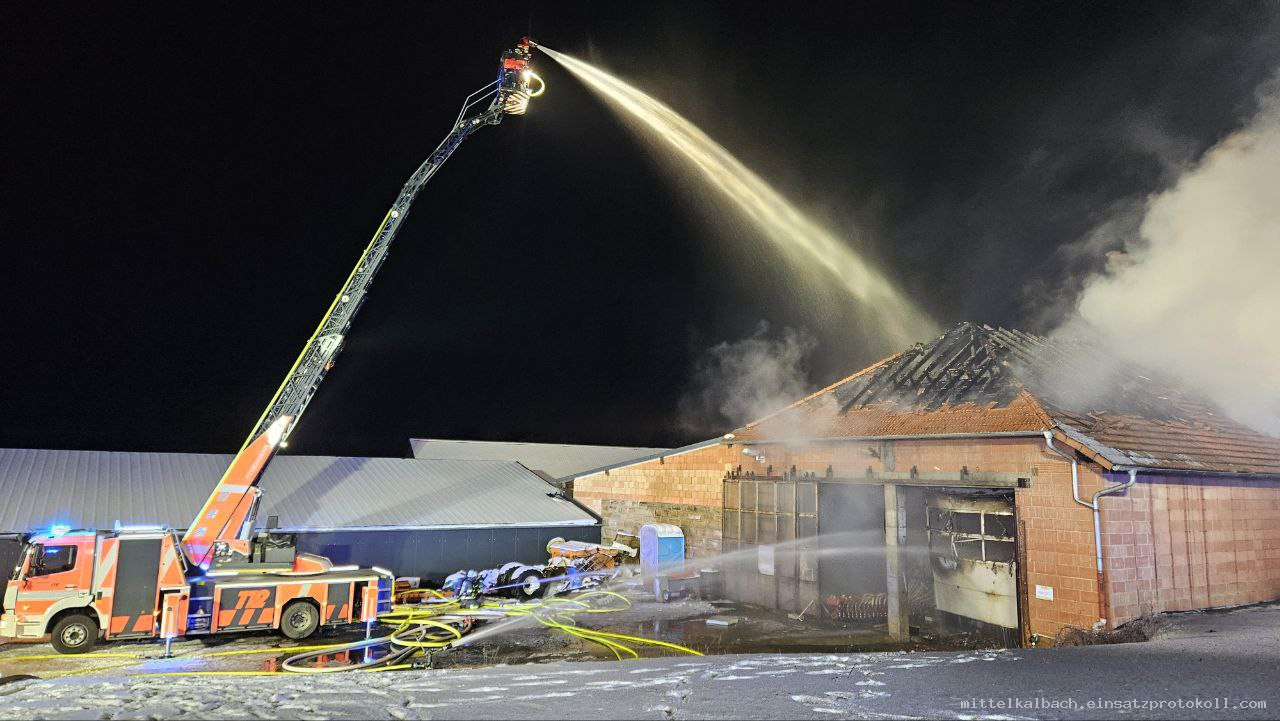 Zu einem Scheunen-/Werkstattbrand wurde unser STLF zur Unterstützung angefordert. Da auch das HLF voll besetzt werden konnte fuhr auch dieses nach kurzer Rücksprache mit der Einsatzleitung die Einstazstelle an und blieb dort in Bereitschaft. Die Besatzung des STLF wurde direkt nach dem Eintreffen einem Abschnitt zugeordnet und untersützte beim Außenangriff auf das Gebäude. Nachdem das Feuer unter Kontrolle war wurden alle Kräfte der Feuerwehr Mittelkalbach aus dem Einsatz herausgelöst und traten die Rückkehr an.