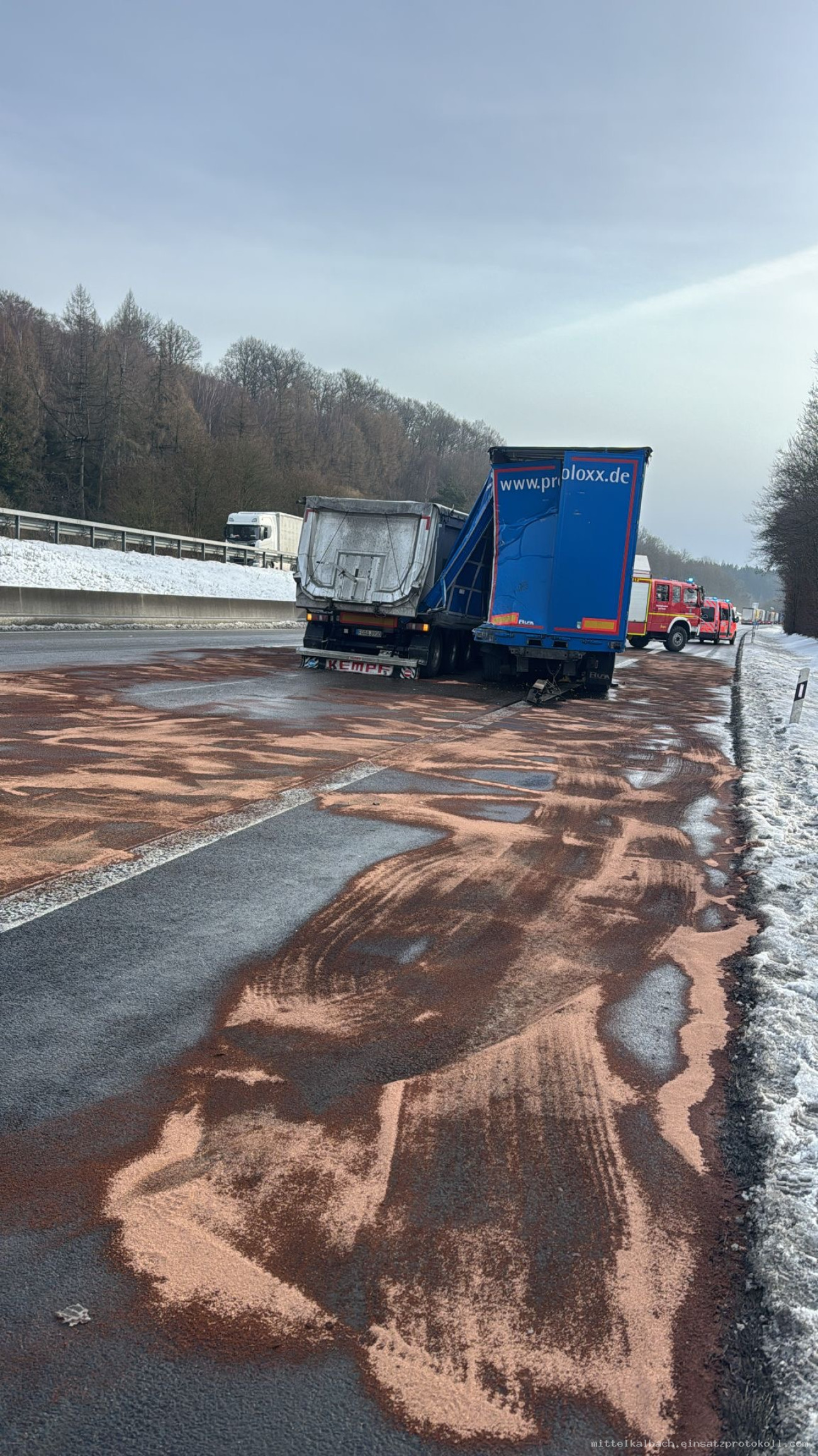 Ein aufgerissener Dieseltank forderte den Einsatz der Feuerwehren asu Kalbach. Nach einen Auffahrunfall liefen große Mengen an Treibstoff aus. Die Kameraden aus Uttrichshausen, welche zu erst am Einsatzort eintraffen, fingen die auslaufenden Betriebsmittel auf und verhinderten das ausbreiten des Diesels. Wir lieferten mit unserem Nachschubfahrzeug weiters Bindemittel. Während des Einsatzes war die Autobahn auf zwei Fahrspuren gesperrt.